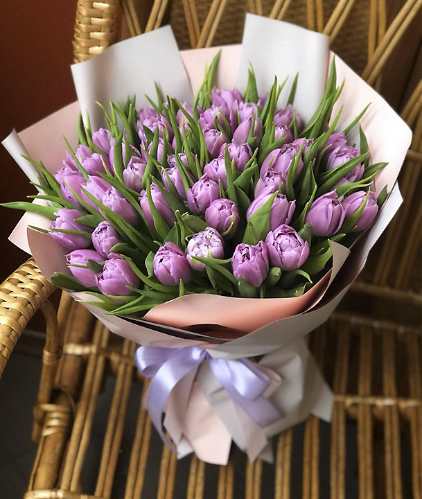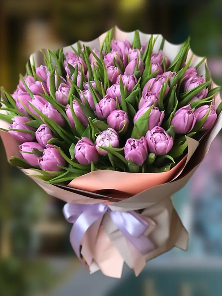 Букет из 49 сиреневых Пионовидных Тюльпанов №22. Доставка Цветов Киев
