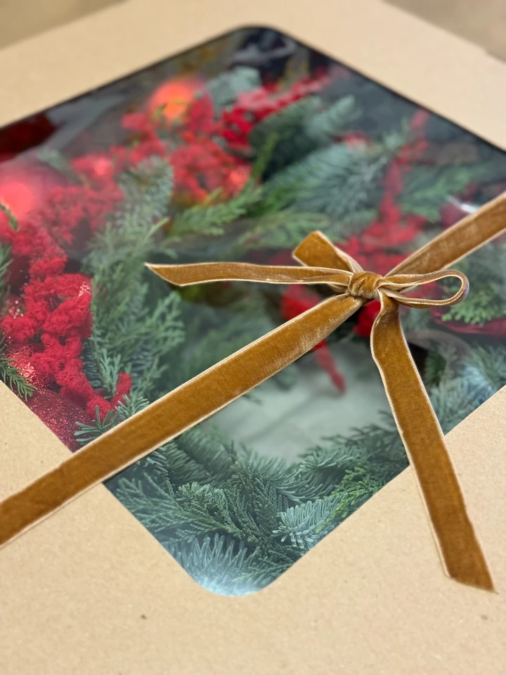 Этот новогодний венок — отличный выбор для тех, кто хочет создать атмосферу праздника без лишней мишуры: уютный, стильный и в то же время очень нарядный акцент для дома, офиса, кафе или салона.