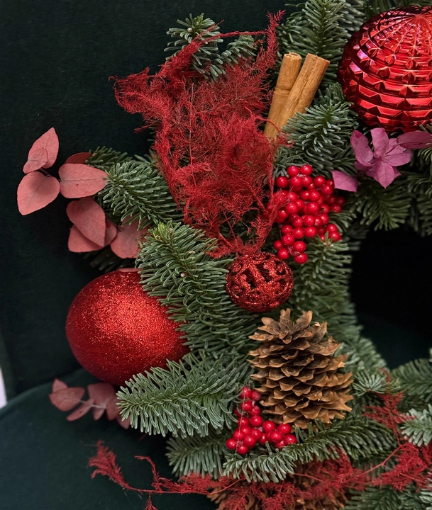 Новогодний венок из нобилиса — Купить в Киеве с доставкой на Позняки и Осокорки | Идеально как корпоративный подарок
